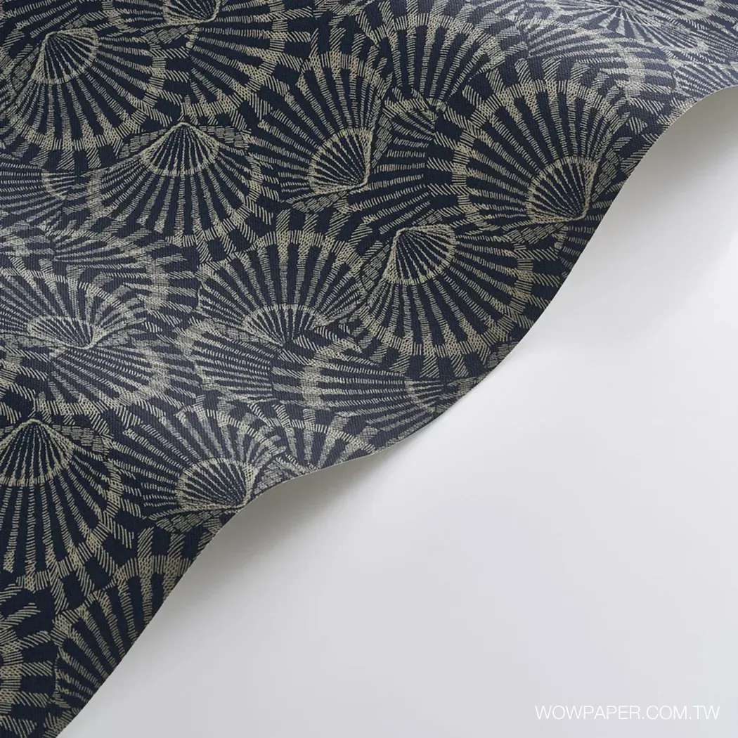 聖馬洛沙灘上的美麗貝殻化為織布紋理上的雅緻設計,起伏的扇形曲線原來是浪漫的貝殻堆疊;面料使用無紡紙搭配乙烯基膜製造,透過質地纖維遇水不變形以及表面的防水特性來達到較防潮和較耐刮的機能性。