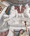細膩的銅版畫風格呈現19世紀湖畔山水和人文景象,寬廣而平靜的湖面被高聳的山脈圍繞著,遠處的村莊和樹木寧靜而悠遠,給空間一種浪漫的氛圍。