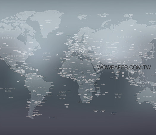 以細木紋為底紋,使用深淺漸層顏色來表現海洋洋流的變化,清楚標示七大洲、四大洋中世界各大城市的位置,而城市的名字在地圖上就像是24小時忙碌不眠的閃耀寶石。