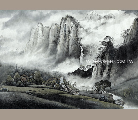 產品名稱:墨彩山水 壁畫-淡彩