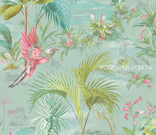產品名稱:棕櫚鳥林 壁紙(藍綠)