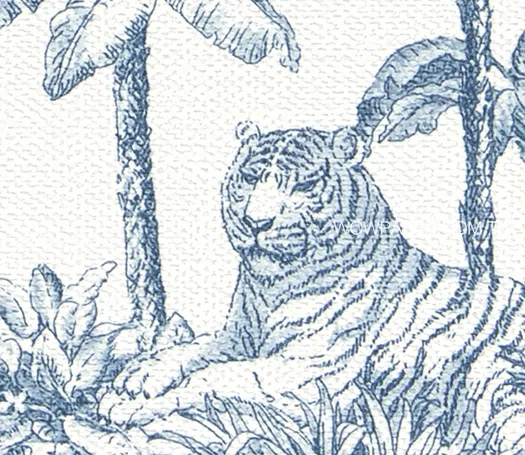 以織布紋為面料,使用源於18世紀晚期法國的傳統印花圖案,微風吹徐的葉林裡有著各種動物,為歐洲經典的紋樣之一;此產品同時具備防霉塗層和較耐刮的「表面強化」機能。