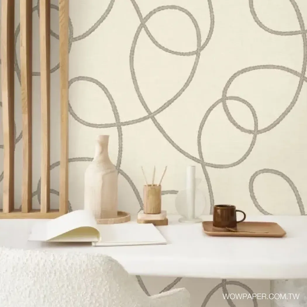 這款航海風的布紋設計以寫實纏繞的繩索圖案為特色,流動感與細緻的描繪呈現出現代且精緻的風格;面料使用無紡紙搭配乙烯基膜製造,透過質地纖維遇水不變形以及表面的防水特性來達到較防潮和較耐刮的機能性。