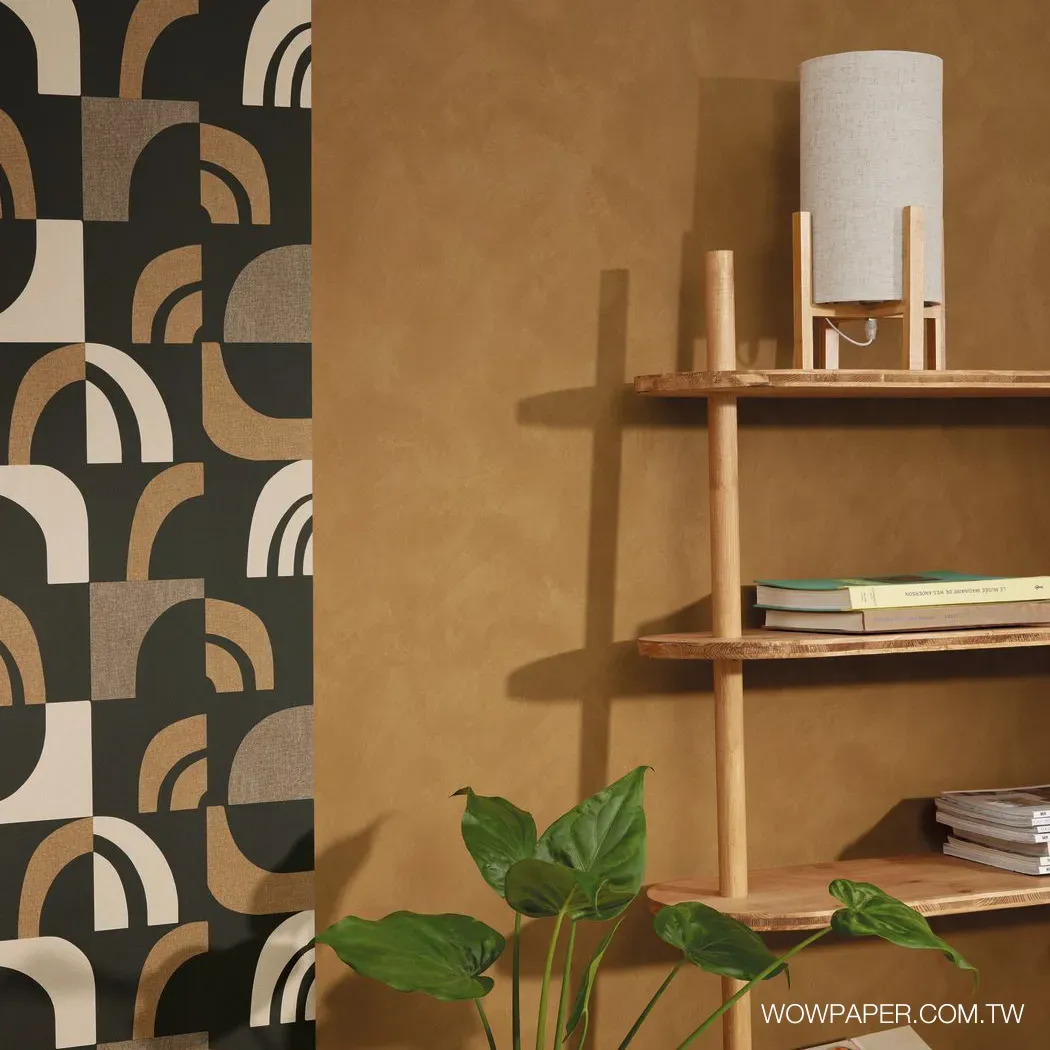 用自然刷色的泥灰抹牆紋理帶來溫暖與活力,適用於搭配各類設計風格的空間中;面料使用無紡紙搭配乙烯基膜製造,透過質地纖維遇水不變形以及表面的防水特性來達到較防潮和較耐用的機能性。