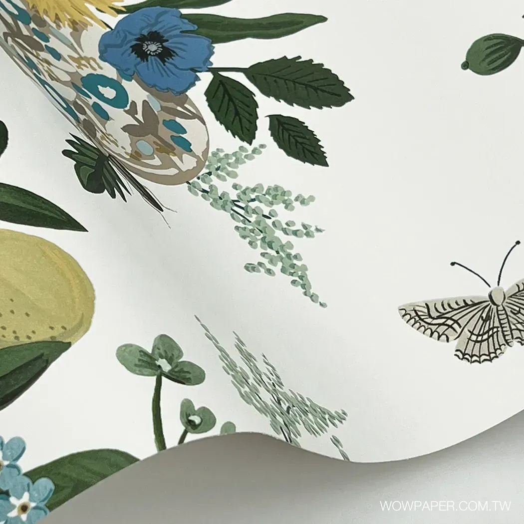 花瓶裡插滿了各式盛開的花朵,點綴著幾隻翩翩起舞的蝴蝶,感受來自春天的美好氛圍。面料使用平滑紋理無紡紙材製造,透過質地較透氣以及表面的防水特性來達到較防潮的機能性,在遇水後不易產生纖維變形等問題。