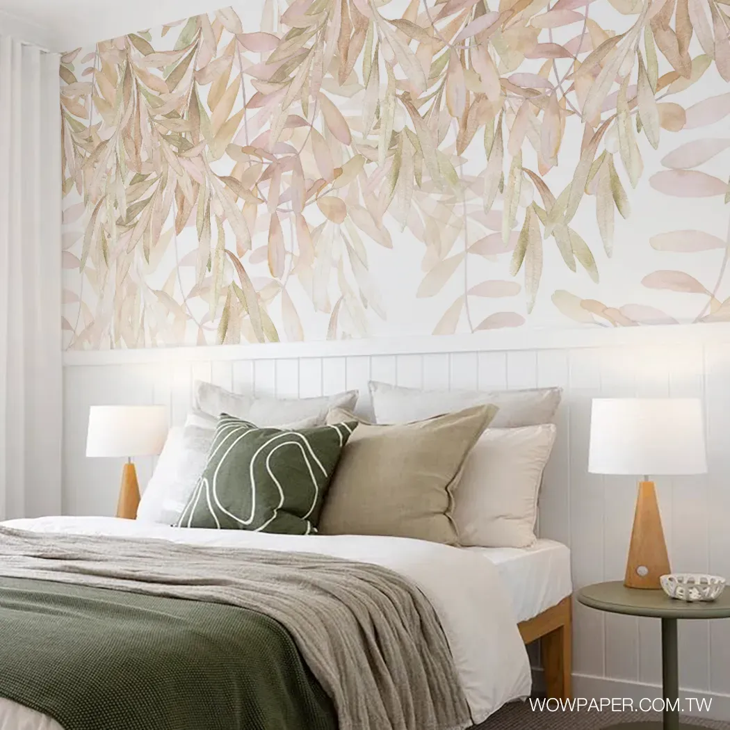 微風吹拂垂掛而下的樹蔭綠葉,在柔和水彩筆觸下輕盈的飄逸著,用來自大自然的清新氛圍療癒心靈。