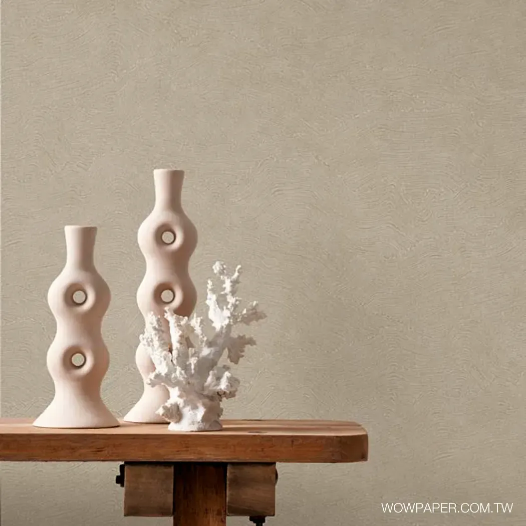 是潮汐起伏的線條,也是沙丘上風的痕跡,都將奧帕爾海岸的美麗樣貌化為細緻立體的波紋設計,同時巧妙的運用中性色彩進一步柔化這片獨特的紋理;面料使用無紡紙搭配乙烯基膜製造,透過質地纖維遇水不變形以及表面的防水特性來達到較防潮和較耐刮的機能性。