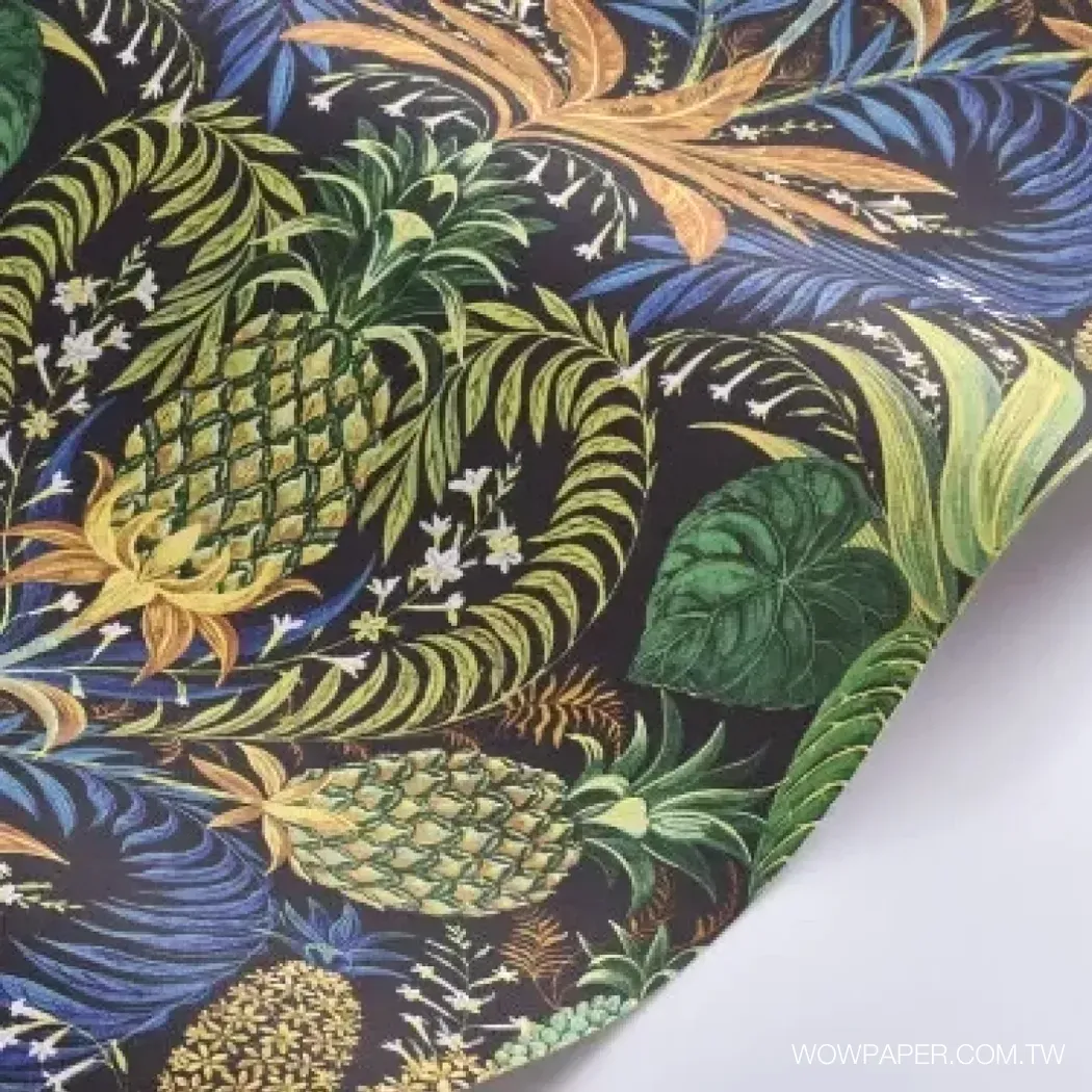 這款充滿律動感與大膽配色的系列,把水果與花朵結合成一幅不再那麼「經典」的圖案構成,「森巴菠蘿」系列將莫里斯風格與熱帶風情完美的融合在一起,呈現出獨特的構圖;面料使用無紡紙製造,透過質地纖維遇水不變形的特性來達到較防潮及較透氣的機能性。