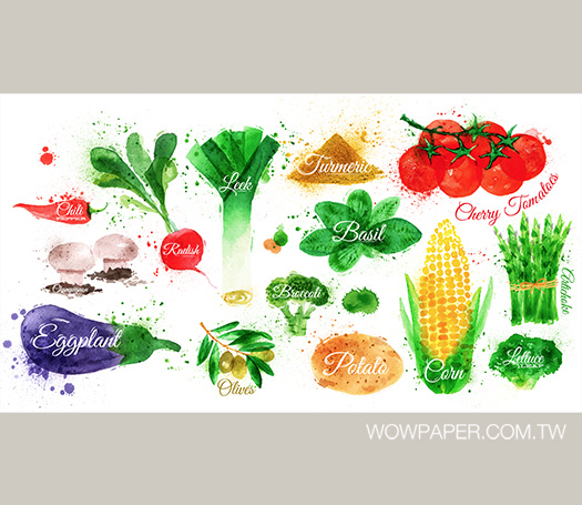 以手墨風格描繪出食材的新鮮,豐富的顏色讓人食指大動。