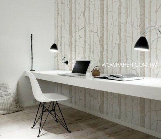 來自日本進口壁紙,以細絲紋為底材紋理,用插畫風格勾勒出冬天林間樹枝相依的美麗景色。