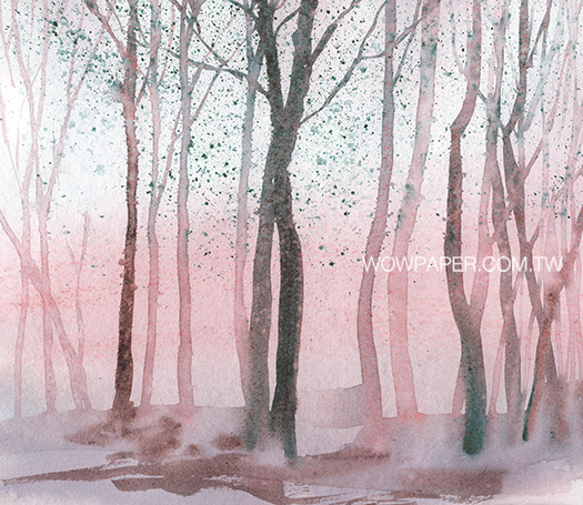 顏料在水份中擴散,滲透出霧氣迷人的浪漫森林,迷漫著療癒人心的氛圍。