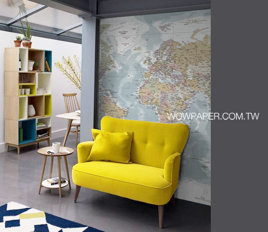 以溫潤細木紋為底材紋理,詳細的地理地形世界地圖為設計。