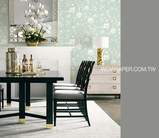 以霧光感平滑紋為底材紋理,以清新的水彩風格繪出樹上美麗的花朵和雀躍的鳥兒,清雅端莊的東、西方格調。