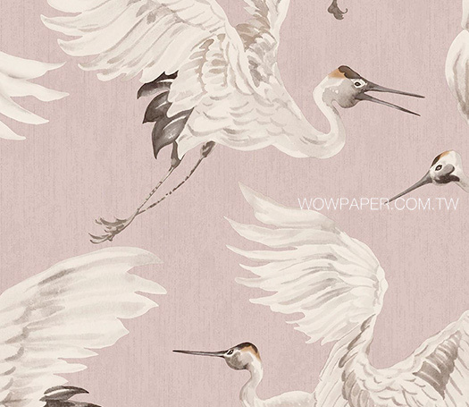 以平滑紋為底材紋理,水彩筆觸中的白鶴展現著各種美麗姿態,搭配現代色彩為備受喜愛的熱帶潮流注入了摩登的氣息;此款商品底材使用無紡紙材製造,其纖維不受潮溼水氣影響。