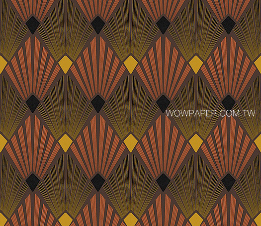以霧光效果棉紋為底材紋理,重現復古奢華風圖騰設計,使用哈瓦那迷人的色彩配置,在局部扇形線條上以珠光感效果呈現華麗感;此商品使用無紡紙材製造,不受潮溼水氣影响。