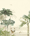 此款商品為尺寸客製化壁紙,可依牆面大小調整作品尺寸生產,其霧光畫布紋理面料加有除霉抗菌的塗層,以及能進行光觸媒循環的物質來中和空氣異味的機能。