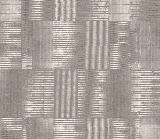 用珠光感厚重色料來呈現具有不同條紋的幾何造型,使用並不總是均勻塗抺的色料來製造手工感的不完美設計,讓人想起版畫的效果,其材質是以無紡紙材製成,不受潮溼水氣影响。