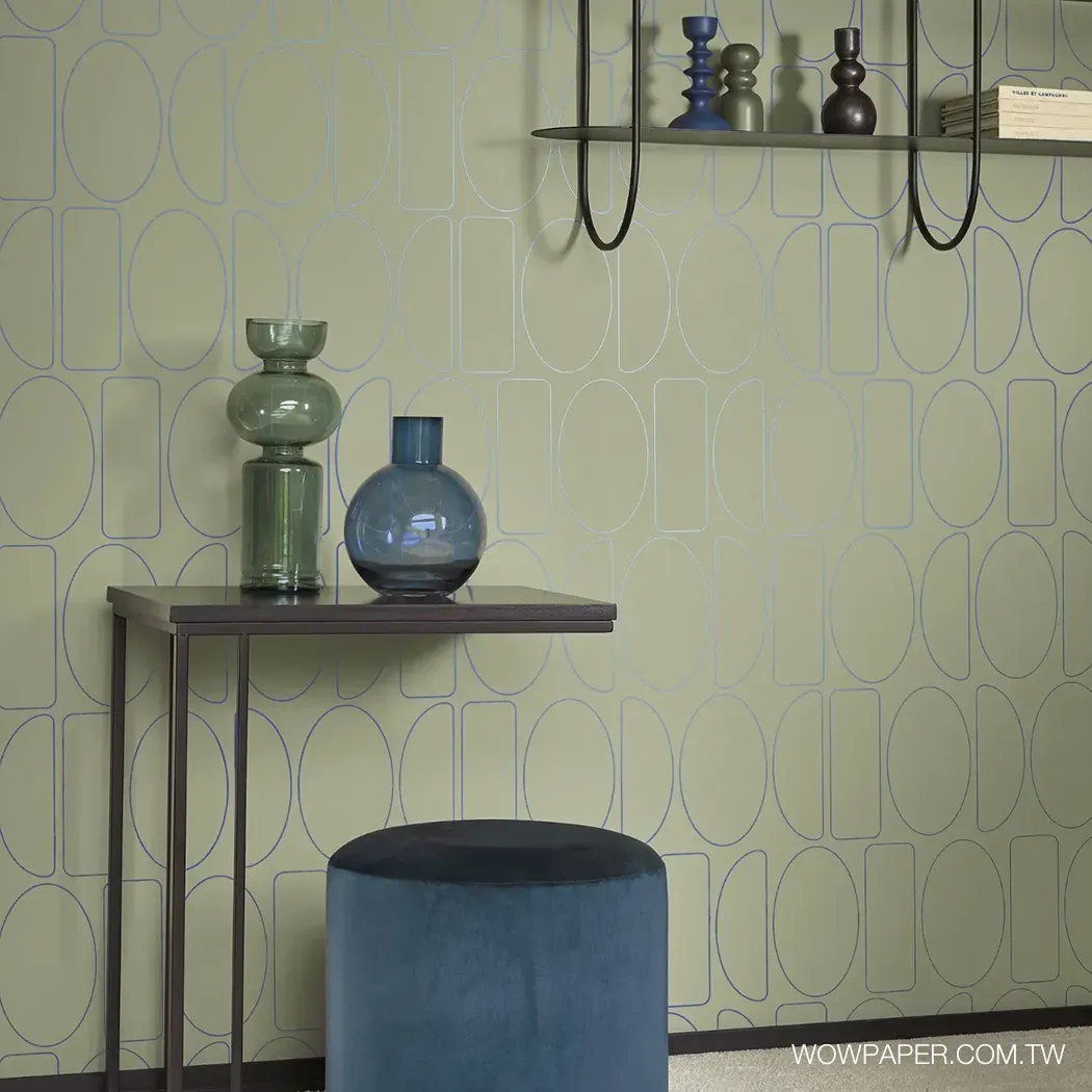 這款以厚磅棉紙紋為面料的壁紙設計,現代抽象風格的幾何線條有著細膩的金屬珠光融合了現代與輕奢感,設計簡潔俐落,霧光面料與珠光線條之間呈現一種美妙的關係,為空間帶來獨特而優雅的氣質。